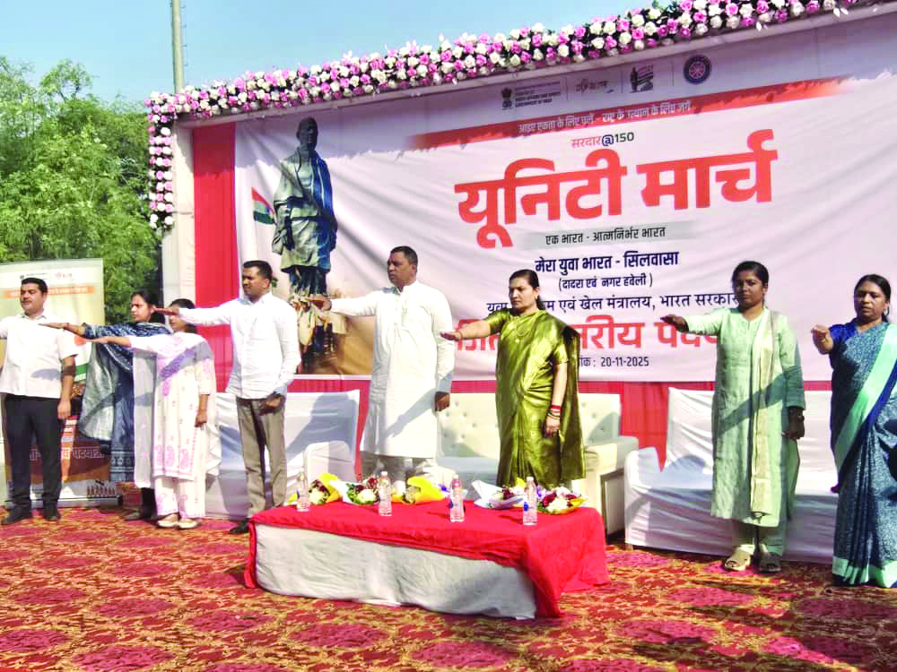 असली आजादी न्यूज नेटवर्क, सिलवासा 20 नवंबर। दादरा नगर हवेली के सिलवासा में आज सरदार वल्लभभाई पटेल की 150वीं जयंती के उपलक्ष्य में भारत सरकार के युवा कार्यक्रम एवं खेल मंत्रालय के अंतर्गत मेरा युवा भारत सिलवासा एवं एनएसएस द्वारा एक भव्य जिला स्तरीय एकता पदयात्रा का आयोजन किया गया। कार्यक्रम का उद्देश्य युवाओं में राष्ट्रीय एकता, अखंडता, कर्तव्यनिष्ठा तथा आत्मनिर्भरता की भावना को जागृत करना था। पदयात्रा का शुभारंभ प्रात: निर्धारित समय पर स्टेडियम ग्राउंड सिलवासा से किया गया, जो पुलिस स्टेशन, आमली चार रास्ता और किलवणी नाका से होकर पुन: स्टेडियम ग्राउंड में संपन्न हुई। लगभग 5 किलोमीटर की इस एकता यात्रा में 500 से अधिक युवाओं, एनएसएस स्वयंसेवकों, विद्यालय-महाविद्यालय के छात्रों तथा स्थानीय नागरिकों ने उत्साहपूर्वक भाग लिया। कार्यक्रम में बतौर मुख्य अतिथि दादरा नगर हवेली सांसद कालाबेन डेलकर उपस्थित रहीं, जिन्होंने युवाओं को सरदार पटेल के जीवन चरित्र, उनकी राष्ट्रीय एकता की सोच तथा भारत के निर्माण में उनके योगदान के बारे में प्रेरक संदेश दिया। इस अवसर पर प्रदेश भाजपा अध्यक्ष महेश आगरिया, भाजपा महामंत्री सुनील पाटिल, संघ प्रदेश थ्रीडी भाजपा महिला मोर्चा अध्यक्षा निशा भावर, राज्य एनएसएस अधिकारी गौरांग वोहरा तथा डॉ. मनीषा पटेल एनएसएस को-ऑर्डिनेटर भी मंच पर उपस्थित रहे। कार्यक्रम की शुरुआत दीप प्रज्जवलन और स्वागत संबोधन के साथ की गई। इसके पश्चात सभी उपस्थित युवाओं और सम्मानित अतिथियों ने मिलकर आत्मनिर्भर भारत एवं नशामुक्त भारत की शपथ ली, जिसमें समाज को नशामुक्त बनाने और राष्ट्र निर्माण में सक्रिय सहयोग देने का संकल्प लिया गया। यह जिला स्तरीय पदयात्रा जिला युवा अधिकारी मंसा के नेतृत्व में सफलतापूर्वक संपन्न हुई। उन्होंने बताया कि यह अभियान युवाओं को देशहित, एकता, अनुशासन और सामाजिक उत्तरदायित्व की दिशा में प्रेरित करने का एक सशक्त माध्यम है। कार्यक्रम के दौरान युवा स्वयंसेवकों विशेषकर सुरेश भोया, साईन जाधव और सचिन बोरसा ने प्रबंधन में महत्वपूर्ण भूमिका निभाई। पूरे कार्यक्रम का वातावरण उत्साह, ऊर्जा और राष्ट्रीय एकता के संदेश से सराबोर रहा। अंत में डॉ. मनीषा पटेल, एनएसएस को-ऑर्डिनेटर ने सभी प्रतिभागियों का आभार व्यक्त किया तथा भविष्य में भी ऐसे कार्यक्रमों में सक्रिय भागीदारी हेतु प्रेरित किया।